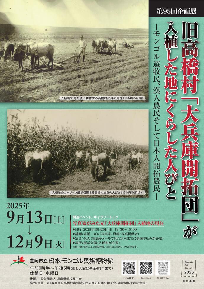 9月13日(土曜日)から、第95回企画展「旧高橋村『大兵庫開拓団』が入植した地にくらした人びと―モンゴル遊牧民、漢人農民そして日本人開拓農民」を開催します。