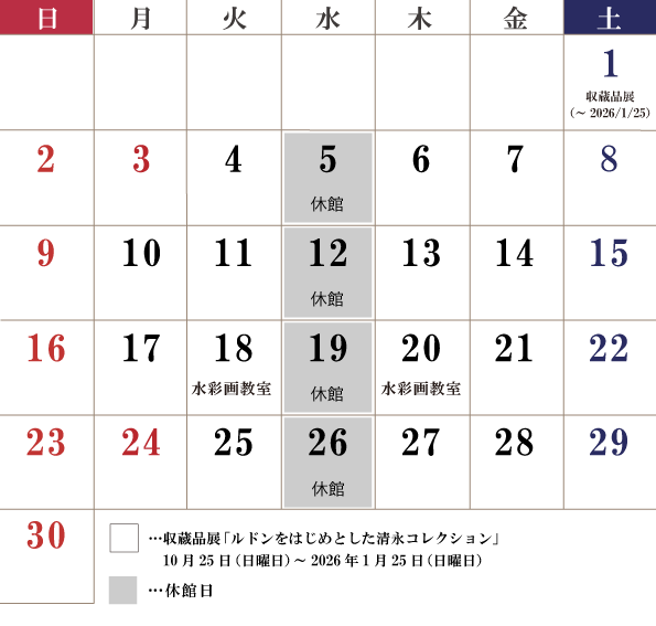 掲載していない期間のスケジュールは、美術館に確認してください。