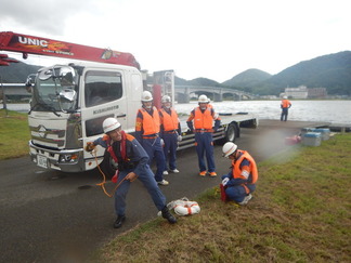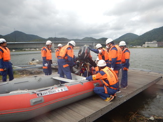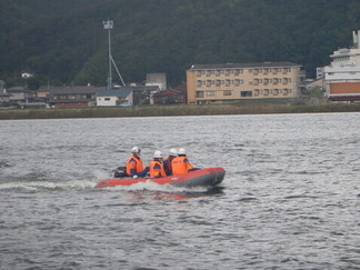 9月21日(日曜日)円山川で、水難救助用ボートの操船訓練を実施しました。