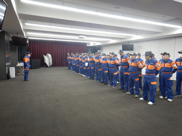 12月15日(月曜日)に豊岡市役所大会議室で、豊岡消防団の団員約40人が部隊礼式訓練を実施しました。