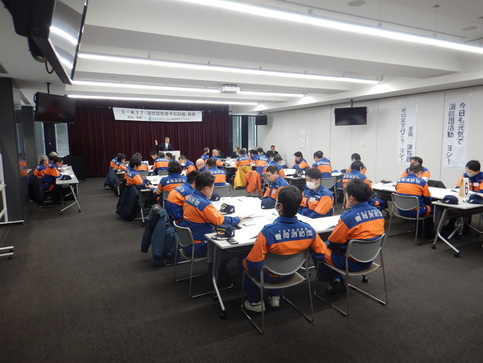 2月1日(日曜日)に豊岡市役所大会議室で、豊岡消防団の全分団から47人の消防団員が参加し、危険予知訓練(S−KYT)研修を実施しました。