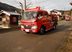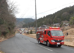 2026年3月15日、但東地域全域で、豊岡市但東消防団(団長:宮垣博文)が山火事防止パレードを実施しました。