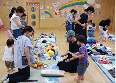 小さくなった子ども服や家で使わずに眠っている物などを持ち寄って必要な方に使っていただく交換会をしましょう。