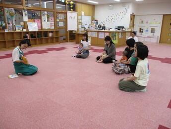 歌、図書館司書・図書ボランティアによる絵本の読み聞かせ、手遊び、絵本の紹介&貸出し・返却 など
