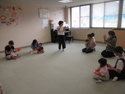 童謡などを歌う、楽器遊び、リトミックを親子で楽しみましょう。
