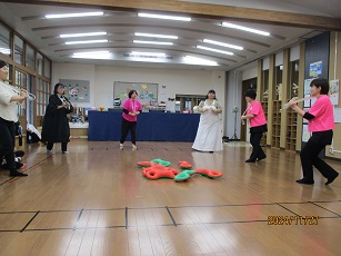 音楽に合わせて親子で体を動かしませんか?ボール、ベル、ベルターを使った親子触れ合い体操です。