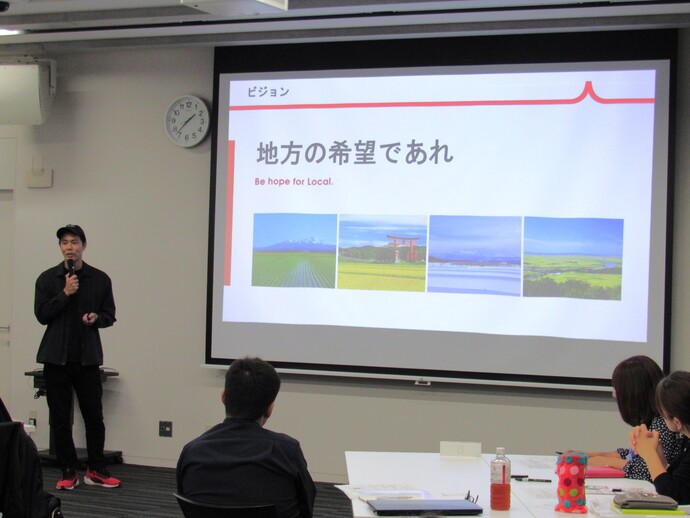 第1部では、山中大介さん(株式会社SHONAI 代表取締役)が登壇。地域活性や地方創生のカギは一次産業にあるとの考えから自身が取り組む事業を紹介しました。また、政治や経済の視点を学びながら地域経営を実践的に考える「SHONAI政経塾」の活動と、その成果についても説明。人口減少や経済縮小といった地方が抱える課題に対し「課題があるからこそ取り組む」という姿勢で立ち向かうことが大切だと強調しました。