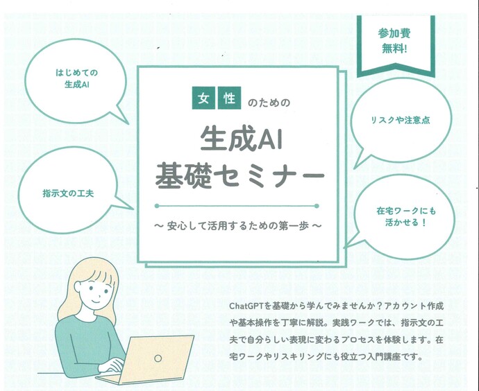 安心して生成AIを活用するための第一歩となる「女性のための生成AI基礎セミナー」を開催します。
