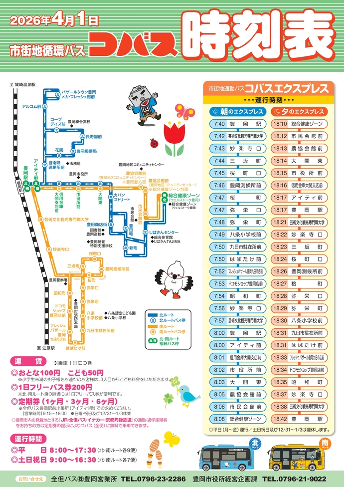 豊岡市内を発着地とする、通勤・通学定期券をお持ちの方は、降車時に定期券を提示することで無料で乗車いただけます。