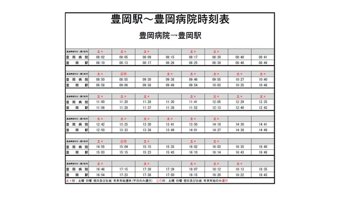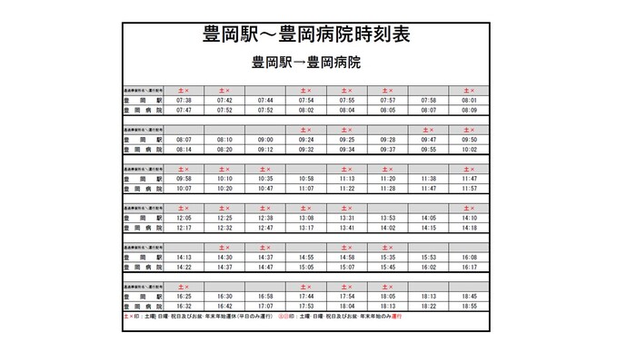 そのため、豊岡病院への通院は、公共交通を利用することで渋滞緩和につながります。皆さんの協力をお願いします。
