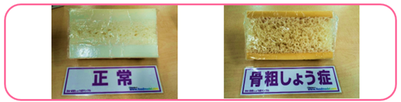 骨粗しょう症とは、骨量(骨密度)が減る、または骨の質が低下することで骨がもろくなり、骨折のリスクが高まった状態です。骨の強度は、骨の量(骨密度)と骨の質(骨質)によって決まり、骨密度が70パーセント、骨質が30パーセント程度関与すると言われています。骨粗しょう症になると、骨と骨の間の空間が広くなり、ちょっとした転倒でも骨折しやすくなります。自分の骨の状態を知るため検診を受け、予防に努めましょう。