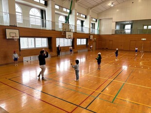 [画像]キャッチボール(26.6KB)1月29日(木曜日)、30日(金曜日)は、市内の幼稚園・認定こども園2園を訪問して野球教室を行いました。