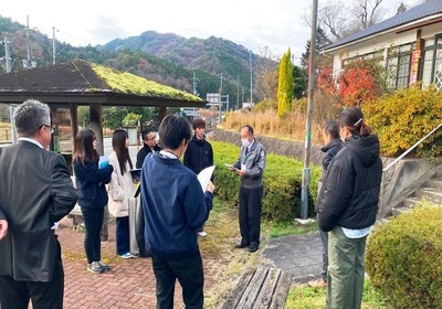 [画像]写真:但東地域の空き家の現地調査の様子(37.5KB)福知山公立大学の学生が、地域住民や移住者を対象にインタビュー調査を行いました。