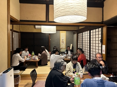 一棟貸切のお宿 “KAZABI”(豊岡市但東町小谷)で、但東地域のコミュニティ組織が調査している「空き家情報」について福知山公立大学の教授・学生と地域コミュニティ組織(空き家対策担当者、会長)・地域マネージャー、但東振興局地域振興課の職員が意見交換を行いました。現在、但東地域が抱える空き家に関する課題、問題点などの情報交換を行い、空き家の利活用を活性化させるための手段を検討しました。