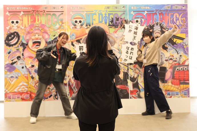 フォトスポット用に単行本の特大パネルを設置しました。芸術文化観光専門職大学生がフォトスポット用にパネルを作成し、来場者はそれぞれ好きなパネルを持って、記念撮影を行いました。