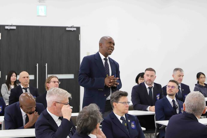 「国際虎風館」の指導者の方々と対談をした嶋教育長は、世界各国の空手の状況などを聞き「テクニックを磨くだけでなく、心の成長にもつながることを知ることができました。子どもたちを通じて空手が世界へ広がり、虎風館の中から世界チャンピオンが出ることを願います」と話しました。